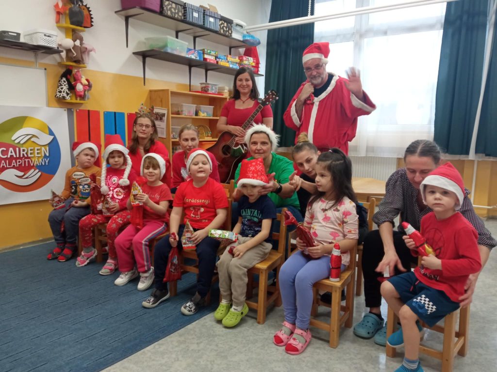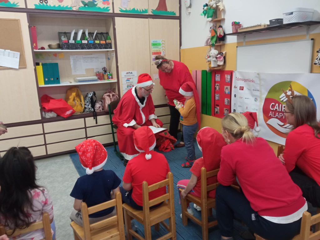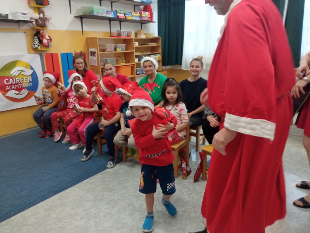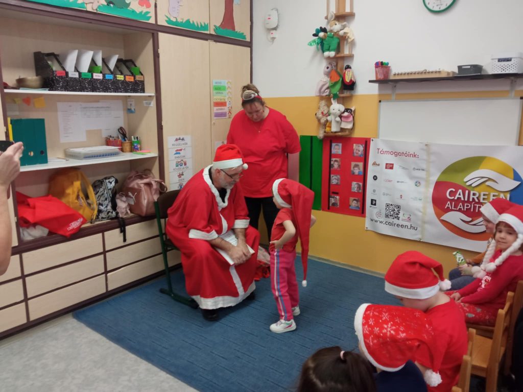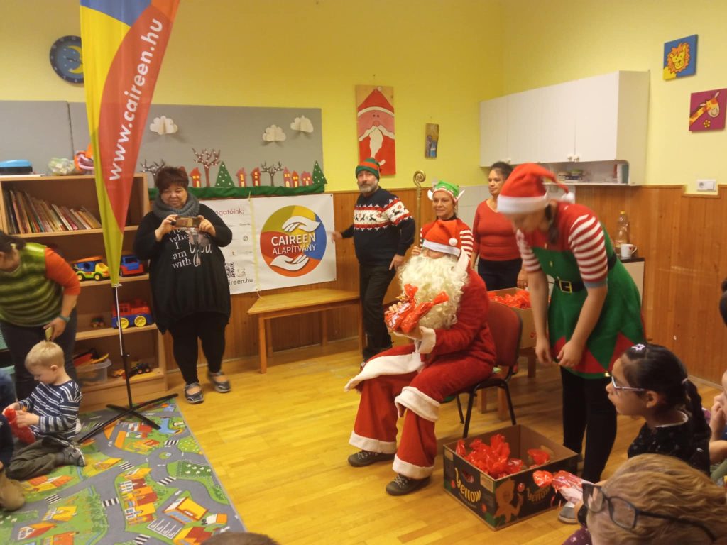 Váci Cházár András EGYMIapróságainak a Télapót hó hiányában a Caireen Alapítvány szállította.